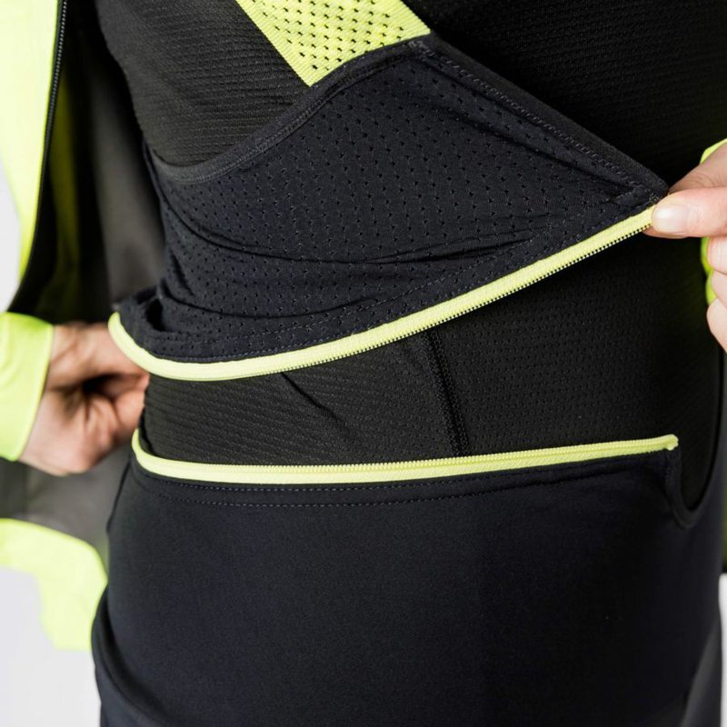 GORE® WINDSTOPPER®: úplne odolný proti vetru, extrémne priedušný a vodeodolný. Vložka ADVANCED Brand Core. Česaná fleecová podšívka pre zachovanie tepla a príjemná na pokožke. Vysoko priedušný materiál odvádza vlhkosť od pokožky, celosieťovaná konštrukcia okolo trakov pre optimálny strih a priedušnosť. Patentovaný systém na zips pre ľahké vyzliekanie počas bioprestávok. Reflexné detaily. Dĺžka vnútorného švu 70 cm.