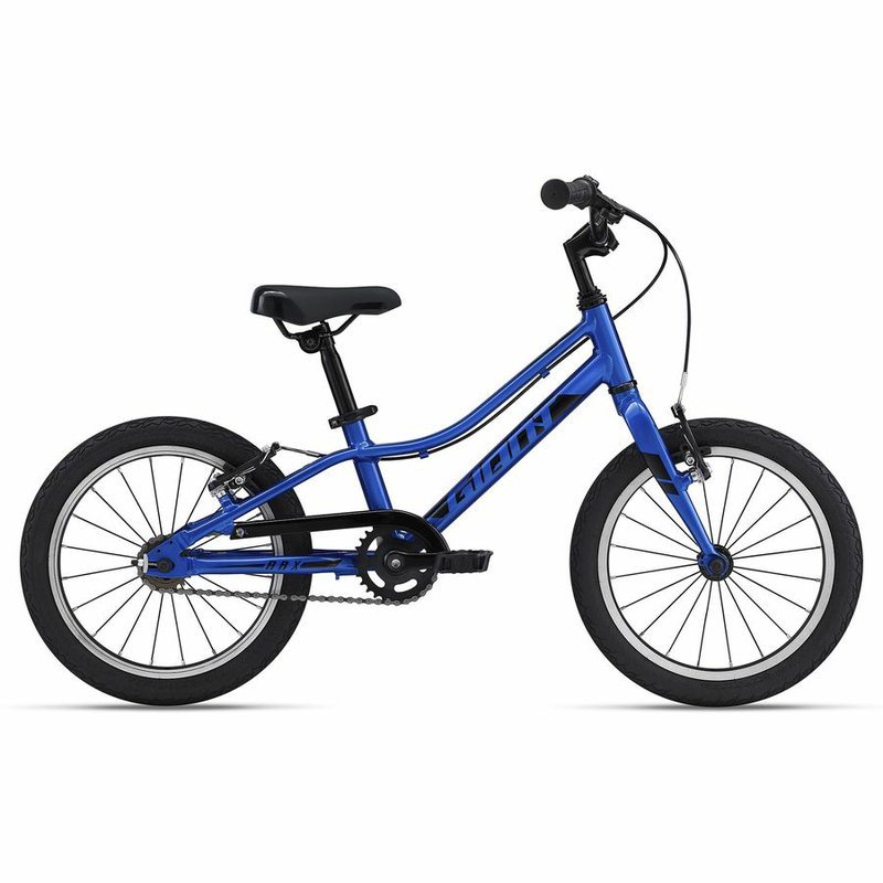 Detský bicyklík Giant s ľahkým hliníkovým rámom, 16" kolesami a ľahkými komponentmi je stabilný a dobre ovládateľný. Vďaka univerzálnym plášťom sa môže vaše dieťa povoziť na cestách, štrku, ale i v lese.