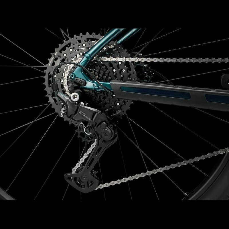 Ľahký hliníkový rám s modernou geometriou pre jazdu na trailoch a vnútorným vedením, ktoré chráni káble a udržiava bicykel elegantný.100 mm predná odpružená vidlica RockShox Judy, ktorá tlmí nárazy na skaly, korene a hrbole na traile, bezproblémové radenie s 10 rýchlosťami pomocou prehadzovačky Shimano CUES a skutočná brzdná sila hydraulických kotúčových bŕzd.