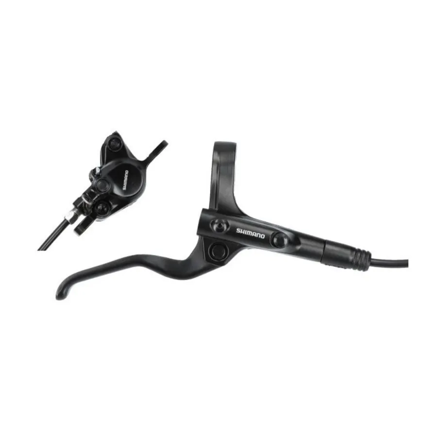Kotúčová brzda MT201. Zložená z brzdovej páky BLMT201 a strmeňa BRMT200 bez adaptéra, spojená hadicou BH59-SS. Platničky-resin B01S.