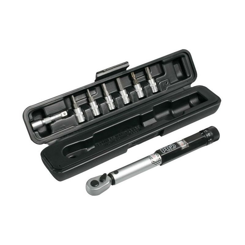 Profesionálny momentový kľúč s nástavcami zabalený v kompaktnom a odolnom púzdre. Nastaviteľný uťahovací moment od 3 do 15 Nm. Pre použite na riadidlá, predstavce, sedlovky...