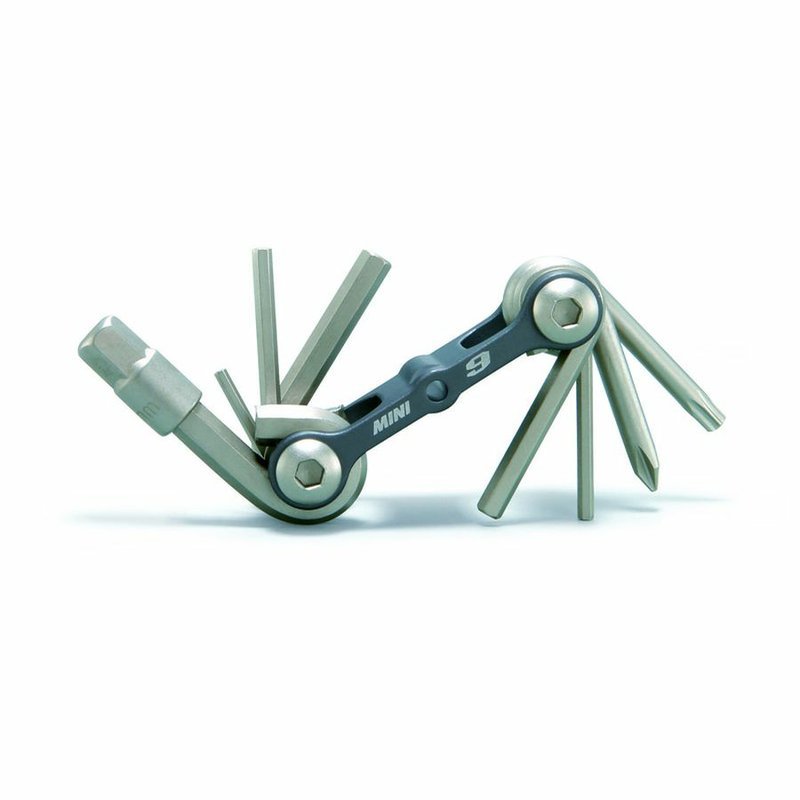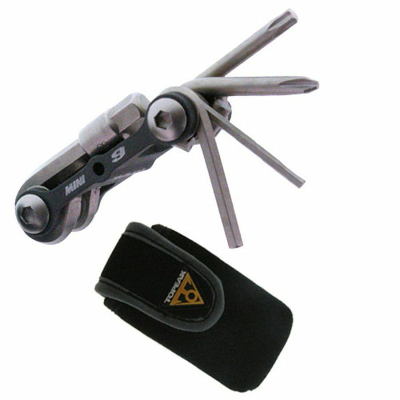 Kompaktný Mini multikľúč z lisovanej zliatiny vhodný pre cestných cyklistov-Minimalistov • obsahuje 9 nástrojov vyrobených z kvalitnej tvrdenej ocele: • inbus 2/2,5/3/4/5/6/8 mm • hviezdicový torx T25 • krížový skrutkovač • súčasťou je aj praktické prenosné púzdro z neoprénového materiálu • rozmery: 6,6x3,1x2 cm • hmotnosť: 92 g