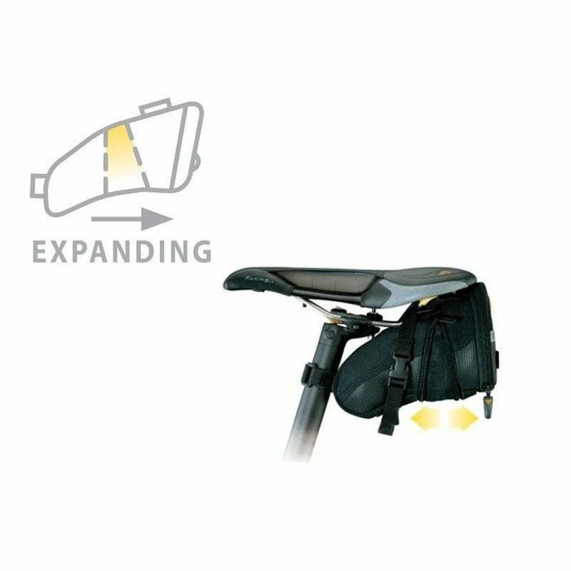 Aerodynamická podsedlová taška, vhodná na prepravu duše, náradia a iného príslušenstva na opravu bicykla • klasická fixácia pomocou popruhu s nylónovou prackou • materiál: 1200 Denier Polyester s ochranou Dupont Teflon • dodatočný 3M reflexný pásik pre lepšiu viditeľnosť v tme • možnosť uchytenia zadnej blikačky • objem: 1,48-1,97 litra • rozmery: 23x13x14 cm • hmotnosť: 165 g