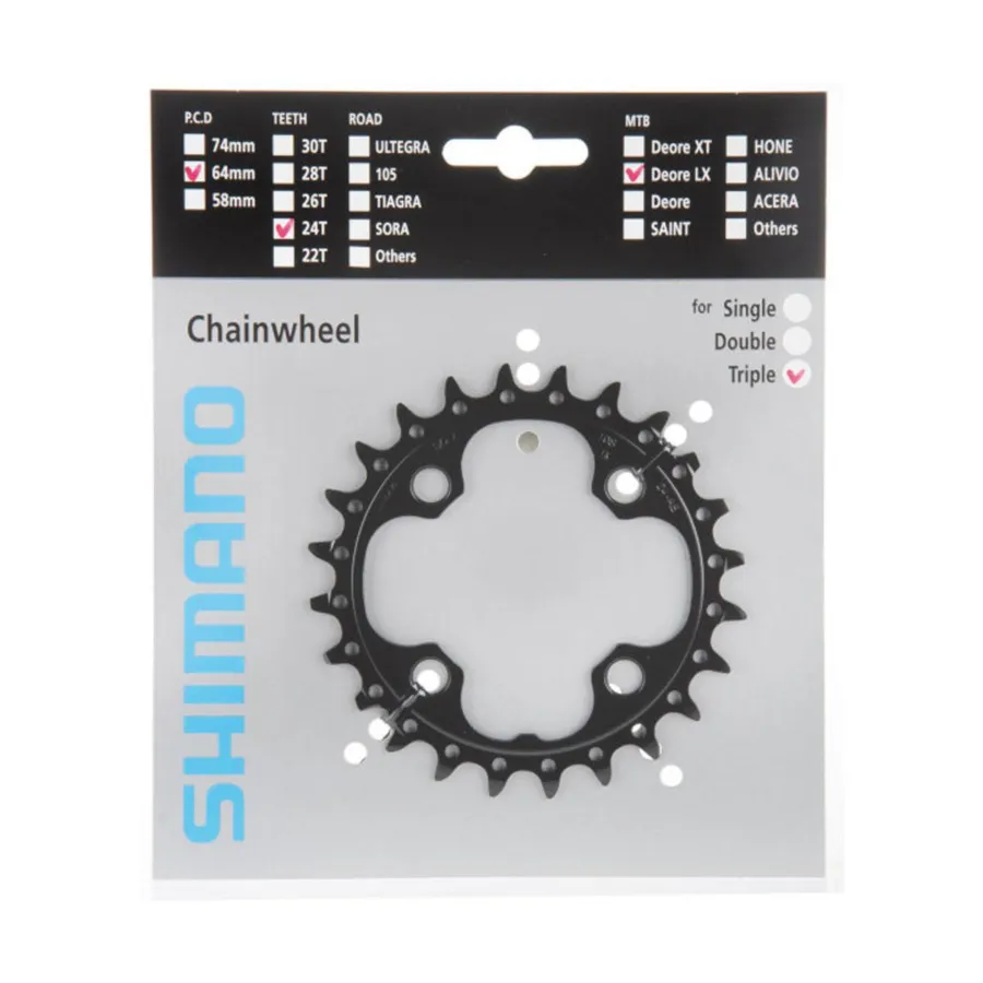 Typ: MTB, Celková váha balenia: 66g, Počet zubov na prevodníku: 24, Prevodníky: 10 rýchlostné, Pre kombináciu prevodníkov: 44/32/24, Počet prevodov: 3x9, Rozteč prevodníkov: 64mm, čierny