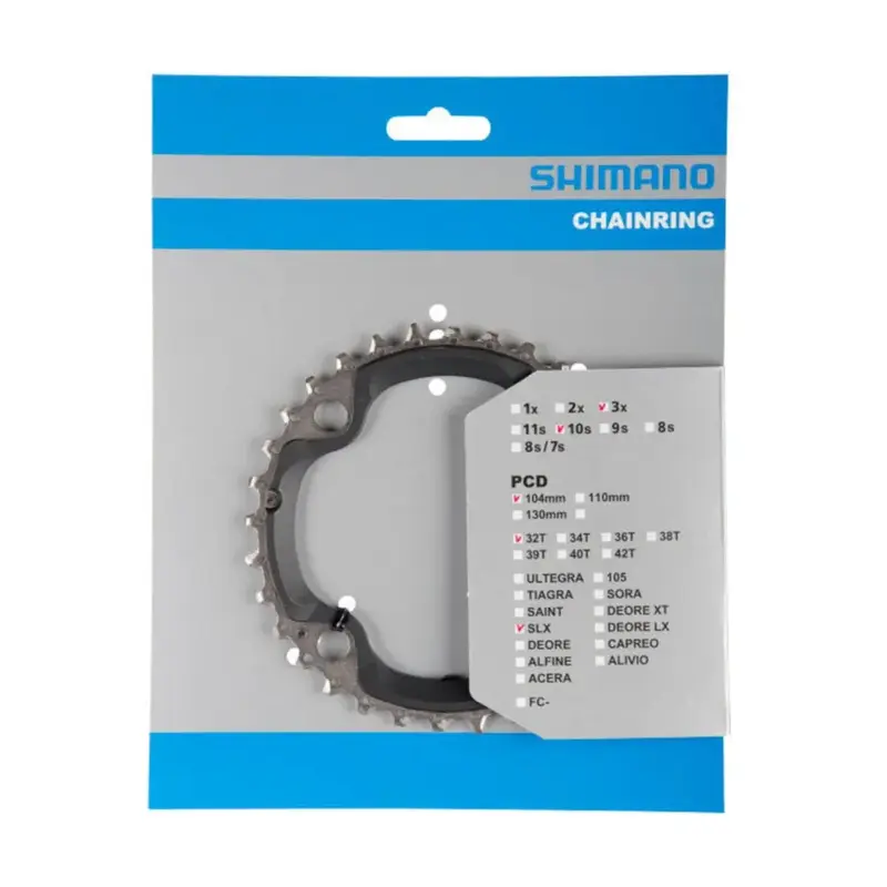 Stredný prevodník SLX pre kľuky FCM670, 10-kolo, 32 zubov. So špeciálne tvarovanými zubami a s reťazami systému HG-X zabezpečí vynikajúcu úroveň radenia. Pre trojprevodník.