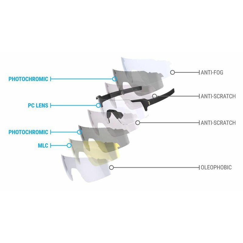 • Moderné a štýlové športové okuliare s PH fotochromatickým sklom s prestupom svetla od 82 do 17% a vysokým kontrastom, ktorý vám rozjasní váš pohľad